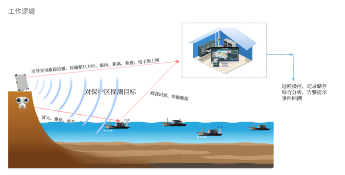 护渔系统首创以事件管理为中心的业务功能包含:目标探测、联动跟踪、抓拍取证、智能预警、事件回溯等功能,前端设备接入由我司设备库认证的“玄武”系列,高分辨率安防雷达和主流先进的PTZ光电设备等,具有易于安装和操作便捷等特点。